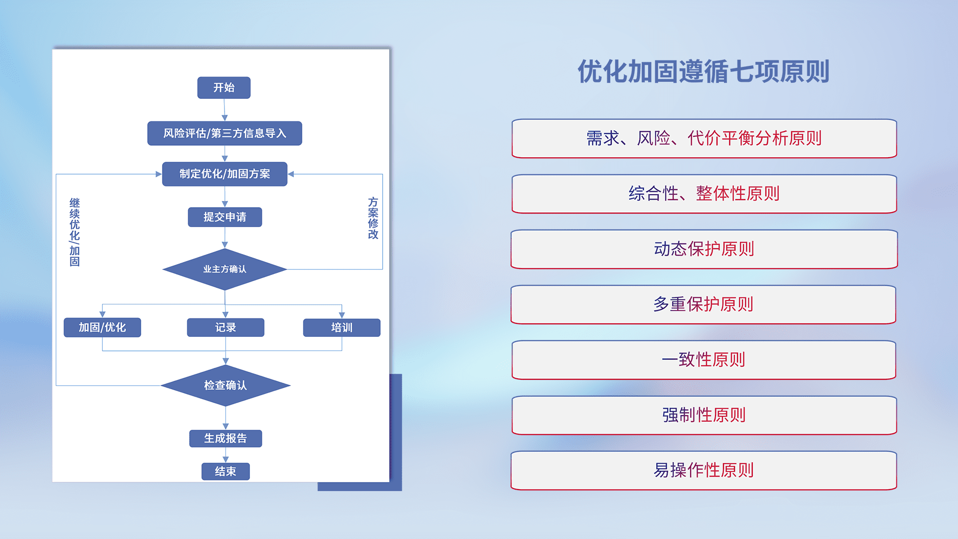 通过专业的法律咨询解读、、、合规架构体现、、差异化解决方案、、、、测试实施支持等服务,,,为客户量身打造等保合规体系。。。
