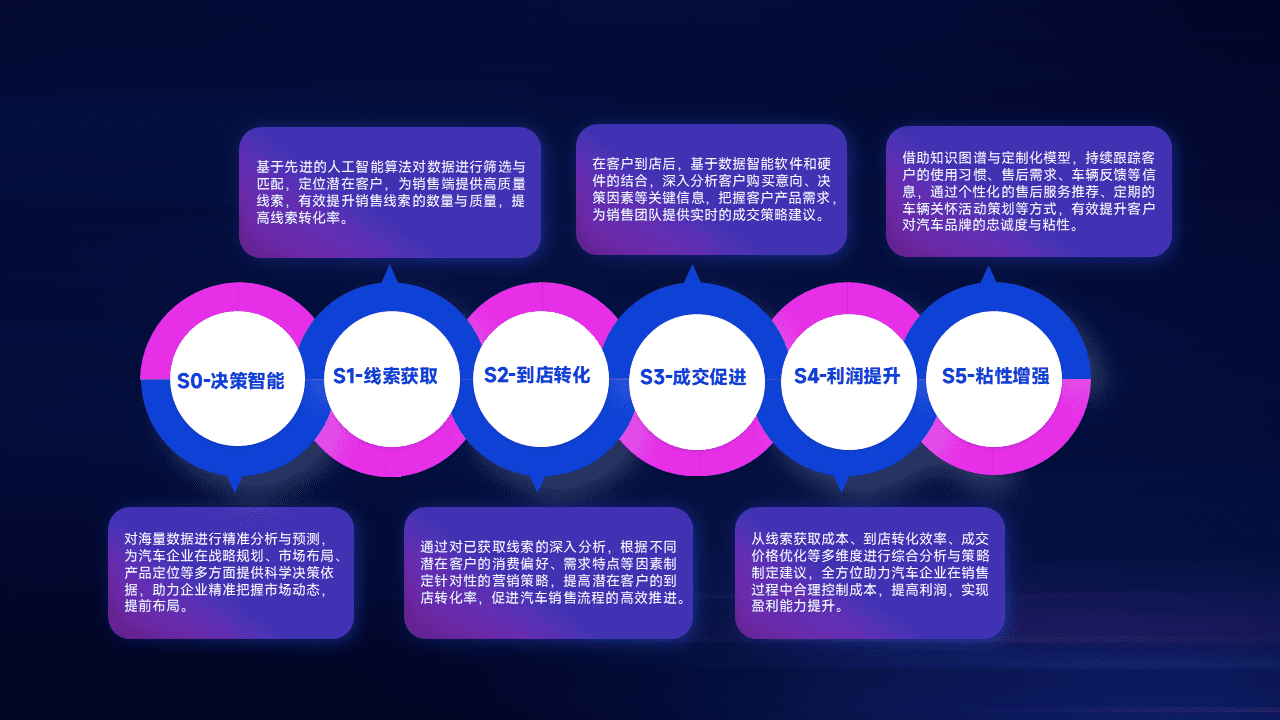 通过拓宽潜在客户来源、、优化线索分配并提高到店转化率,,,,以增强销售效率。。。同时,,,利用线索数据不断优化分析模型,,,有效提升转化率,,扩大营销影响力。。